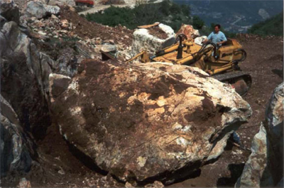 Per il sezionamento dei blocchi vengono tutt’oggi adoperati i martelli perforatori che, azionati da compressori ad aria, eseguono i fori nella roccia a distanze di cm. 15/20 tra di loro. L’impiego di argani, ed a seguire dei mezzi meccanici tipo pale ed escavatori, restano comunque indispensabili per lo spostamento dei blocchi.