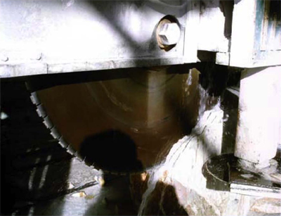 In passato tali tagli si eseguivano con un impianto di filo elicoidale costituito da una serie di volani montati su pali e piantati in decine di punti nel perimetro di cava, necessari al raffreddamento del filo stesso ed azionati da una macchina completa di rinvii avviata da motore elettrico. L’impianto terminava su due pulegge tra le quali passava il filo a grossa velocità. Tale sistema permetteva di dare grossi tagli al monte, benché il vero e proprio taglio veniva prodotto mediante il passaggio e lo strofinamento con acqua e sabbia silicea sulla roccia. Quando il filo iniziava a tagliare rallentando la velocità, bisognava adoperarsi alla cala mediante ingranaggi azionati manualmente e montati sui due piantoni usati per il taglio. La maggior parte delle cave di marmo è stata inizialmente coltivata in questo modo, ed ancora oggi sono presenti in alcune di esse resti di impianti di filo elicoidale, seppure non più adoperati. In seguito, agli inizi degli anni settanta e ottanta, con la scoperta di nuovi abrasivi e tecniche di taglio come lame e dischi diamantati, subentrarono nuovi sistemi che consentirono una precisione ed una velocità nel taglio fino ad allora impensabili. Nelle cave, in particolare, l’avvento del settore diamantato modificò e rinnovò totalmente gli impianti presenti fino a quel momento: l’input tecnologico delle macchine a filo diamantato e di quelle a catena con settori diamantati fu notevole. A quel punto anche l’impiego di manodopera poté diminuire per la semplicità del posizionamento delle tagliatrici a filo, anche se questo tipo di macchine si rivelarono fin dall’inizio abbastanza pericolose per gli addetti ai lavori.