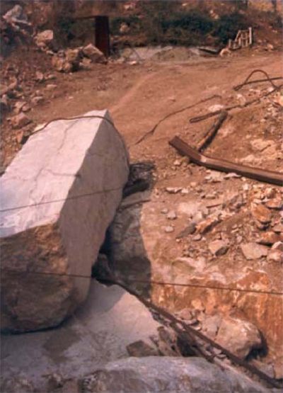 piccoli per la riquadratura in cava dei blocchi ottenuti.