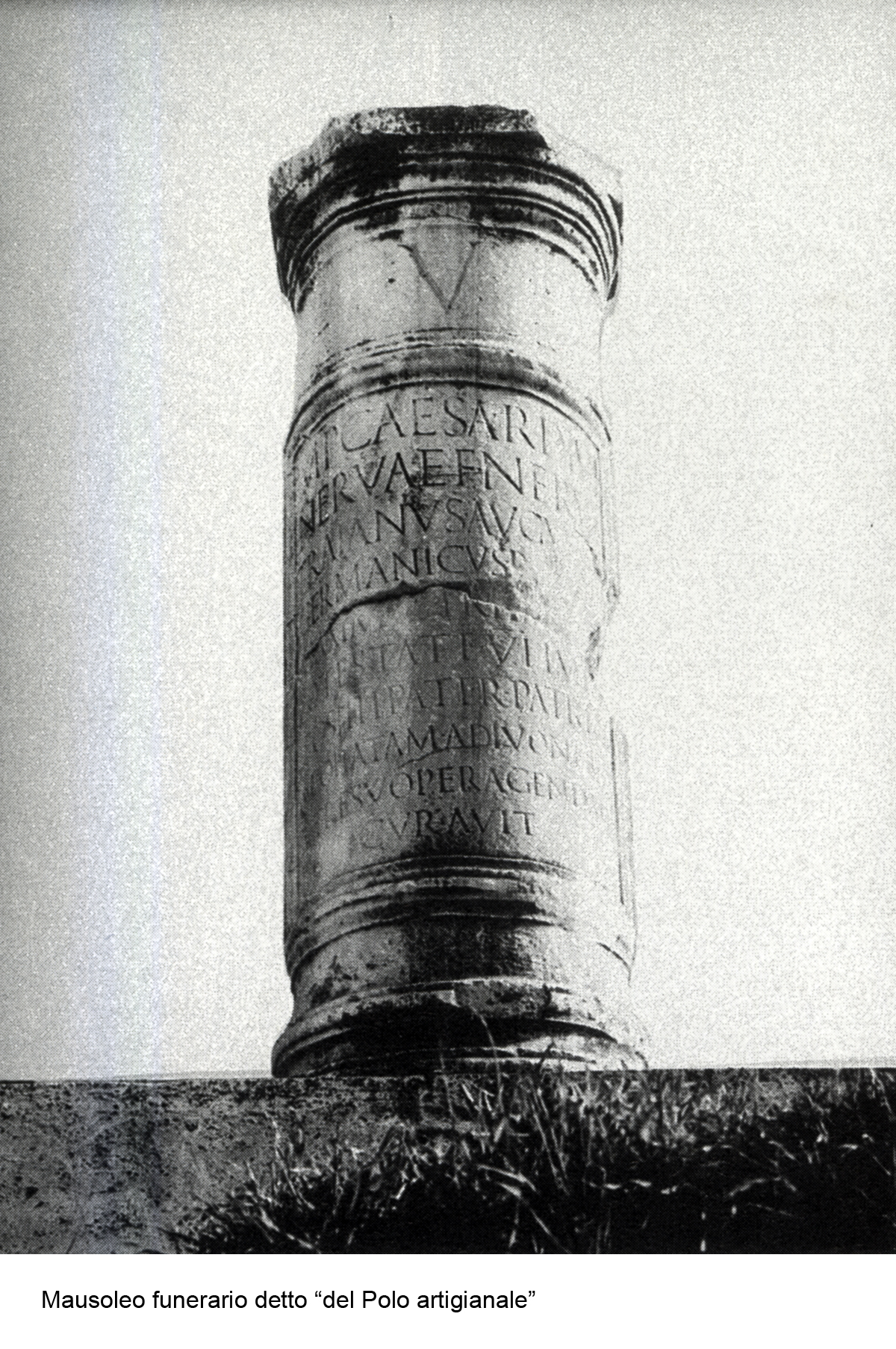opus reticulatum e in opera laterizia rivestita di cocciopesto, nonché di un mausoleo funerario detto “del Polo artigianale”